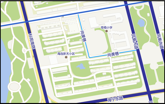 10.尚美巷:位于苍梧小学西侧和南侧,东起凤凰大道,北至建设东路,长400米,宽12米的道路命名为尚美巷。